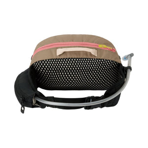 With storage capacity comparable to small backpack-style options, Hot Laps 5L is a capable hip pack, complete with two-liter Hydrapak® 3D lumbar reservoir and additional space to stow a gamut of gear on your rides. Its redesign now provides a fleece-lined pocket on the padded hip belt to conveniently stow a phone or sunglasses. The main compartment features organization for tools, food, and a light shell, while lower straps deploy to hold pads. Side compression straps keeps the load close as the water reservoir is emptied, and a breathable AirFlow back panel does away with hotspots and minimizes sweat.